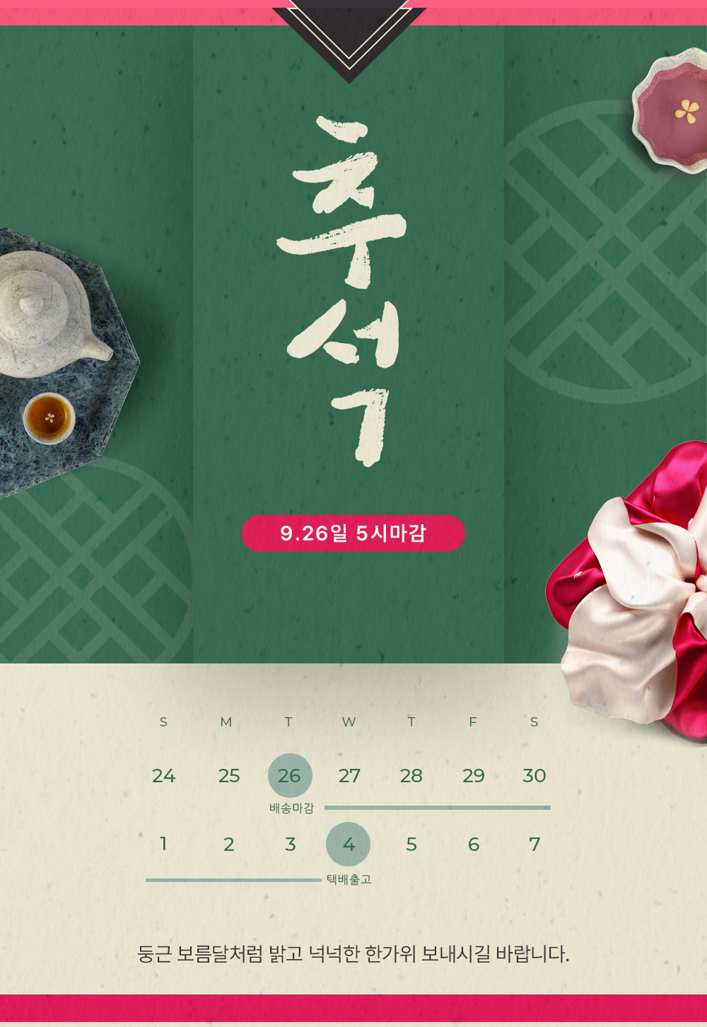 9월 26일(화) 오후 5시 까지의 주문건은 정상 배송되며