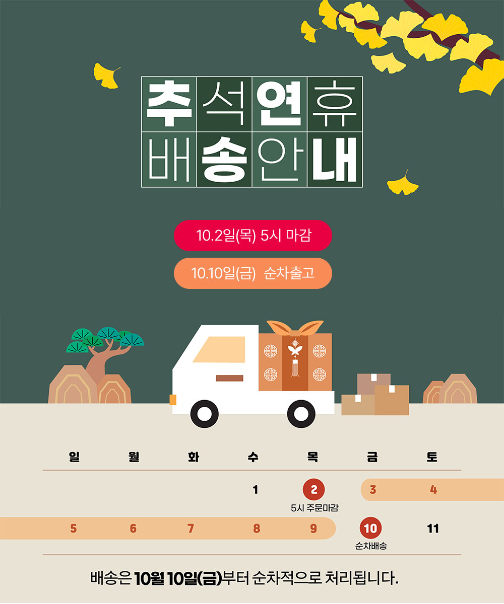 10월 2일(목) 오후 5시 까지의 주문건은 정상 배송되며